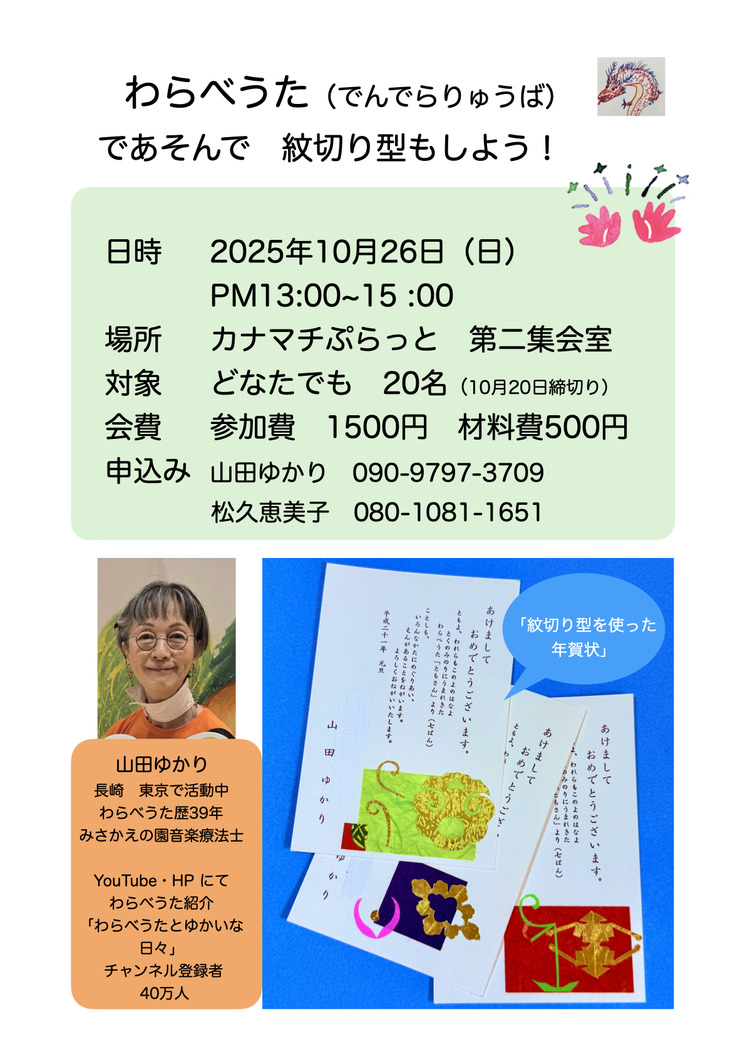 申込み 山田ゆかり 090-9797-3709 warabeuta@gmail.com